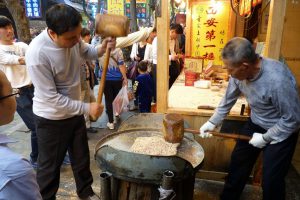 Als je enkele van deze dorpjes hebt gezien begint het op te vallen dat de zogenaamde ‘traditionele producten’ – zoals bijvoorbeeld de pindakoekjes die met grote houten hamers platgeslagen worden – niet alleen in talloze winkeltjes in één dorpje te krijgen zijn maar eigenlijk in elk dorpje te vinden zijn. Het schijnt de Chinees niet te deren. Ook het feit dat bezienswaardigheden vaak verre van authentiek zijn blijkt geen probleem te zijn. De pragmatische Chinees is al gauw tevreden met replica’s, misschien wel omdat er tijdens de Culturele Revolutie zoveel cultureel erfgoed vernield is, ongeacht of het om een dorpje als Dachang gaat dat door de bouw van de Drieklovendam onder water is komen te staan en nu hoger op de helling is nagebouwd, of om de bouw van een ‘nieuwe oude’ stadsmuur in Datong die nooit in die vorm bestaan heeft.
