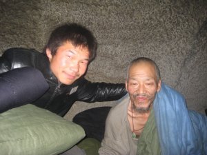 Na het eten pakten de daklozen hun zakken met eigendommen en schuifelden terug de nacht van Xi’an in. En nadat de laatste een nieuw kapsel aangemeten had gekregen werden we opgedeeld in groepen voor Noord-, Oost-, West- en Zuid-Xi’an en werden de dekbedden, matrasjes, broeken en jassen verdeeld, alsmede instructies gegeven over hoe ze uitgereikt moesten worden. Om 22.00 uur was het zover en reden we met twee auto’s en een bestelwagen naar het zuidelijke deel van Xi’an’s historische stadsmuur, op zoek naar de plekken waar de daklozen sliepen; onder bruggen, in parken en in portieken. Makkelijker gezegd dan gedaan, want daklozen hebben ook zonder huis geen vast adres en hebben nogal de neiging om van slaapplaats te wisselen. Een van de groepen vond met gemak 18 daklozen, terwijl onze groep na 3 uur rondrijden en zoeken, zowel binnen als buiten de stadsmuren, op een totaal van 7 kwam.