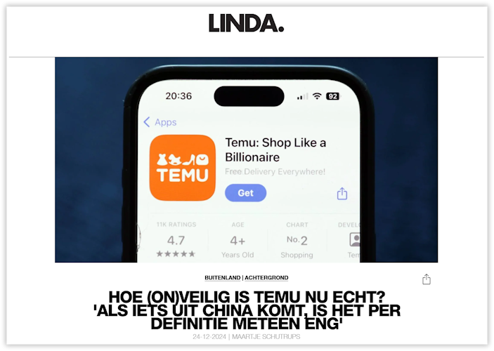 Kort geleden haalde ik op LinkedIn flink uit naar het blad LINDA. Er werd een oud citaat van me gebruikt in een stuk dat naar aanleiding van uitlatingen in Den Haag nog eens probeerde te bewijzen hoe gevaarlijk Temu is.